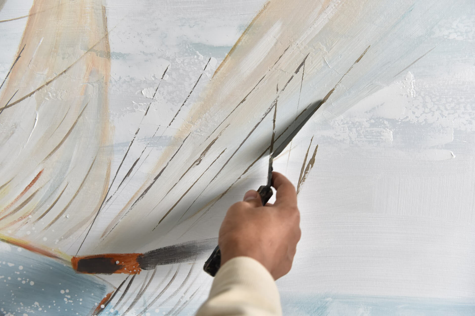Ihr KunstLoft® Gemälde erhalten Sie in der Größe 150x50cm. Wir verwenden kraftvolle Acrylfarben und Leinwände in Profiqualität. Sie sind geruchslos und gesundheitlich absolut unbedenklich. Anders als bei minderwertigen Drucken auf Leinwand können Sie auf unseren Unikaten jeden Pinselstrich fühlen. Ihr Acrylbild können Sie sofort aufhängen, da ein praktisches Aufhängesystem angebracht ist. Die Gemälde sind auf 3,5cm breiten Keilrahmen aus massivem schwedischen Tannenholz gespannt - auf billige, sich verbiegende MDF-Rahmen verzichten wir. Zur leichten Ausrichtung liefern wir eine kleine Wasserwaage mit.