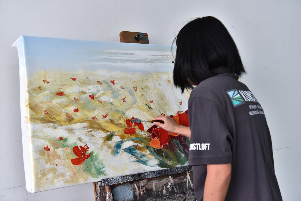 Victoria Shao gebruikt motieven uit het plantenrijk in haar schilderijen en is een echte papaverspecialist. De kunstenaar uit Jingdezhen heeft een zwak voor mooie dingen en esthetiek. Omdat haar geboortestad wordt beschouwd als de hoofdstad van het porselein, werkt ze ook eerst in de industrie. Ze werkt graag met het kwetsbare materiaal. Haar bloemmotieven verschijnen net zo nobel als de porseleinen werken. Bij de illustratie van het papavermotief gebruikt ze zowel licht abstracte als realistische voorstellingen. De compositie bestaat altijd uit de dieprode papaver op de voorgrond tegen een witte achtergrond. De kleurstelling is intens en gebaseerd op expressief-realistische omstandigheden. Ondersteund door de ondoorzichtige toepassing van verf, illustreren de schilderijen de extreme emoties die de kunstenaar ervaart tijdens het creatieve proces.